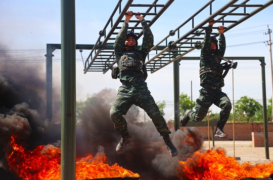 圖為特戰(zhàn)隊員進(jìn)行突破障礙訓(xùn)練。