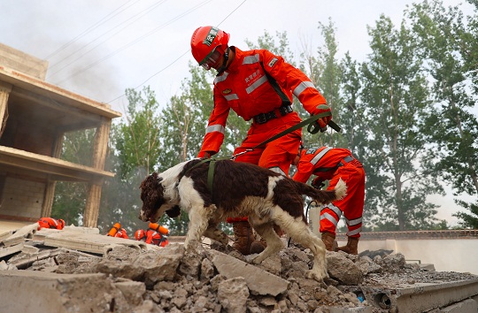 圖為官兵進(jìn)行搶險救援訓(xùn)練。