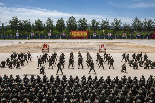 京郊,驕陽似火?!?名‘不法分子’向某高地逃竄,現(xiàn)命令你部迅速處置。”指揮員一聲令下,無人機(jī)即刻升空,精準(zhǔn)鎖定目標(biāo),戰(zhàn)斗小組交替掩護(hù)逼近?!巴粨簦 彪S著一陣槍響,“不法分子”應(yīng)聲而倒。