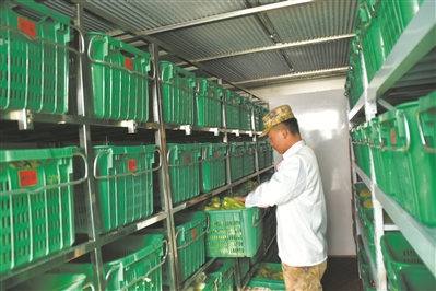 本報(bào)訊 記者孫興維、通訊員王沛報(bào)道:盛夏時(shí)節(jié),記者從正在海拔4000多米高原駐訓(xùn)的新疆軍區(qū)某部獲悉,上級(jí)為他們配發(fā)的集裝箱型野戰(zhàn)菜窖好用耐用,使得難儲(chǔ)葉菜保鮮時(shí)間延長(zhǎng)、保鮮效果更好。