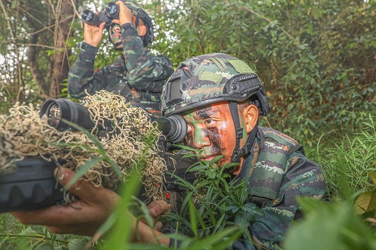 圖為狙擊小組占領(lǐng)制高點準備對目標實施精準打擊。