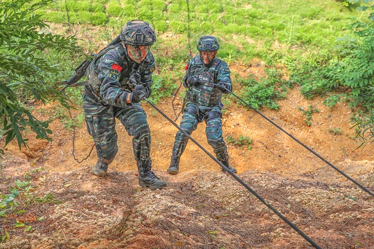 圖為特戰(zhàn)隊員正在進行攀登訓練。