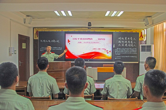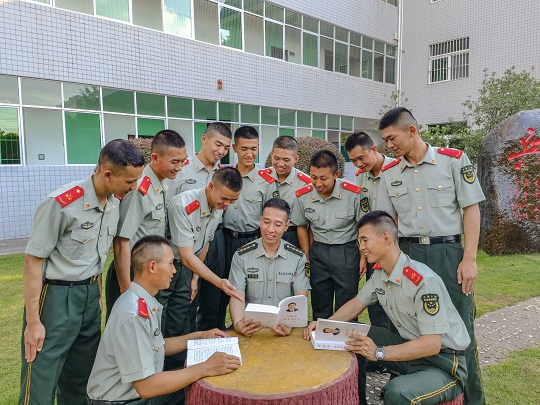 圖為官兵通過(guò)開(kāi)展讀書交流會(huì)學(xué)習(xí)《習(xí)近平談治國(guó)理政》第四卷。