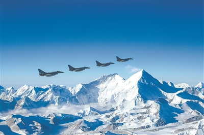圖為戰(zhàn)機編隊飛越雪山。邱文韜 攝