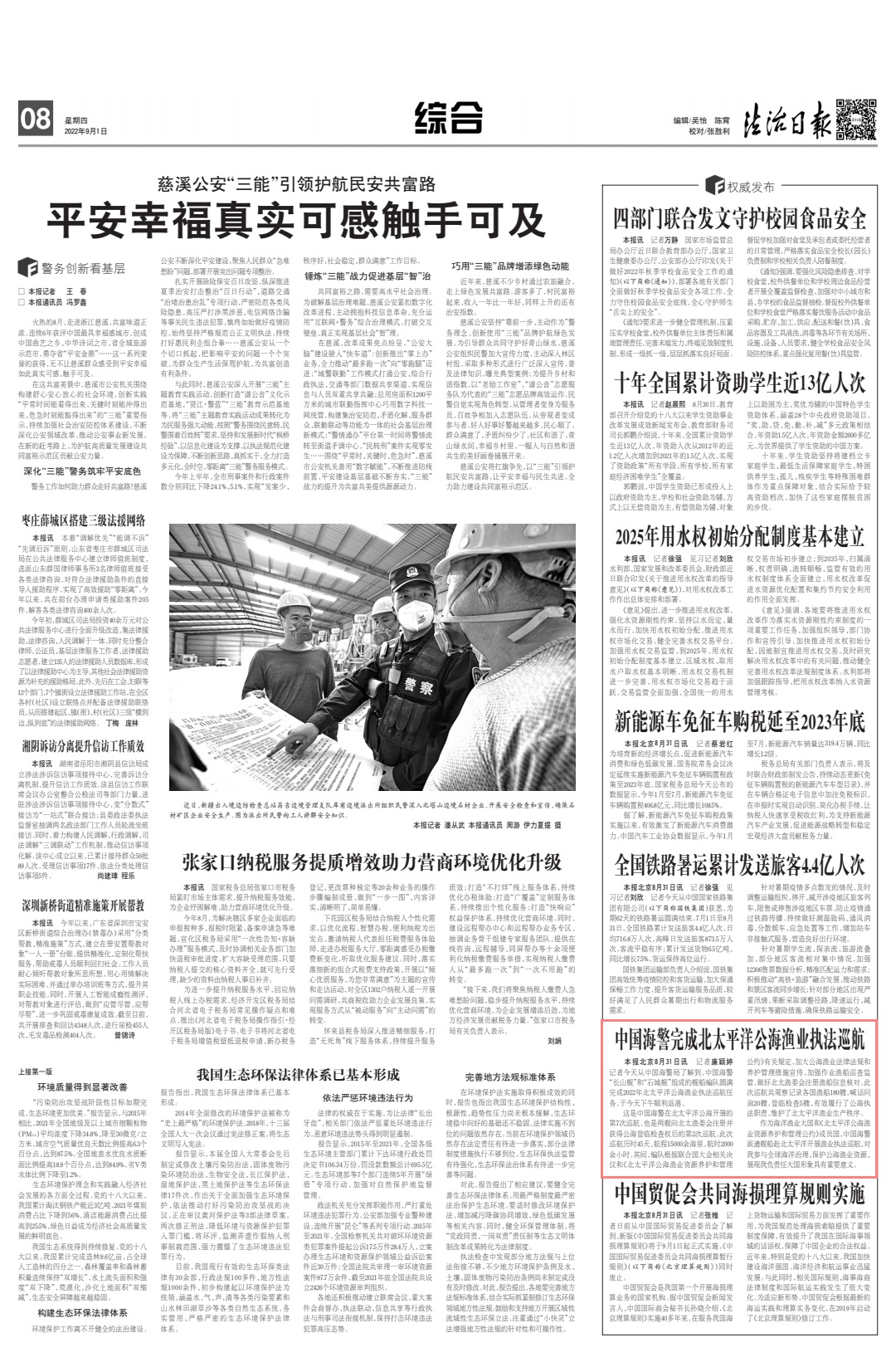 作為海洋漁業(yè)大國和《北太平洋公海漁業(yè)資源養(yǎng)護(hù)和管理公約》成員國,中國海警派遣艦船赴北太平洋開展?jié)O業(yè)執(zhí)法巡航,對我參與全球海洋治理、保護(hù)公海漁業(yè)資源、展現(xiàn)我負(fù)責(zé)任大國形象具有重要意義。下一步,中國海警局將繼續(xù)深入開展公海漁業(yè)執(zhí)法巡航,積極履行公約義務(wù),為有效維護(hù)公海漁業(yè)生產(chǎn)秩序發(fā)揮應(yīng)有作用。