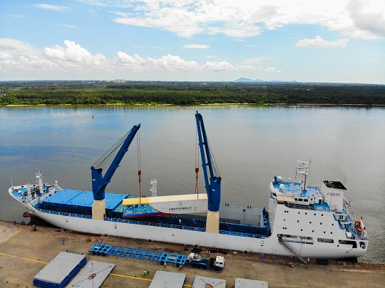 8月下旬,兩艘火箭運輸船先后從天津港起航,先期出發(fā)的遠(yuǎn)望21號船經(jīng)過6晝夜的海上航行,途經(jīng)渤海、黃海、東海、南海等海域,于8月29日安全停靠海南文昌清瀾港。隨后出發(fā)的遠(yuǎn)望22號船于9月1日抵達(dá)清瀾港,到達(dá)港口后兩船立即展開了火箭吊裝相關(guān)工作。