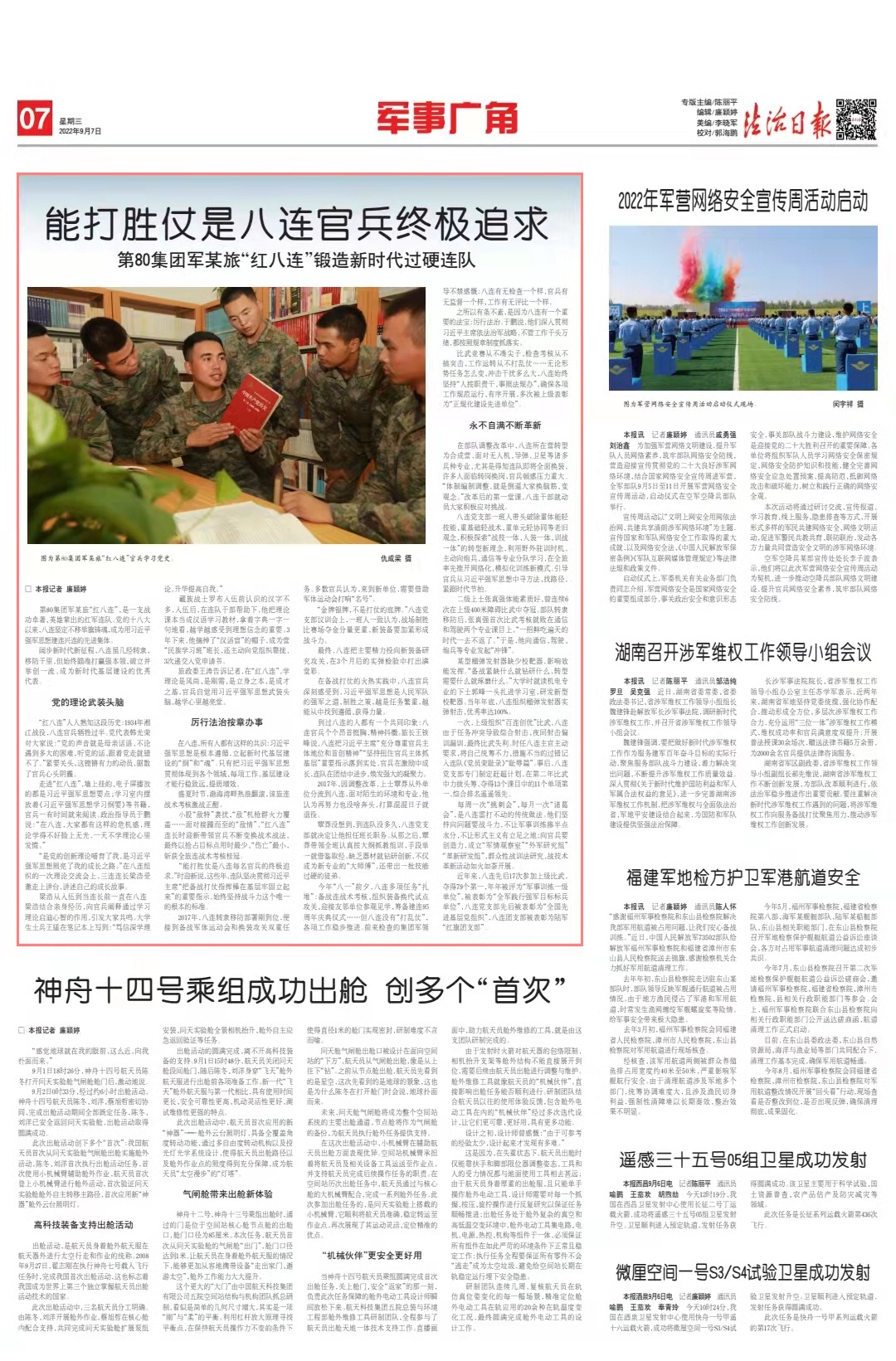 比武競(jìng)賽從不湊尖子、檢查考核從不搞突擊、工作運(yùn)轉(zhuǎn)從不打亂仗……無論形勢(shì)任務(wù)怎么變、沖擊干擾多么大,八連始終堅(jiān)持“人按職責(zé)干,事照法規(guī)辦”,確保各項(xiàng)工作規(guī)范運(yùn)行、有序開展,多次被上級(jí)表彰為“正規(guī)化建設(shè)先進(jìn)單位”。