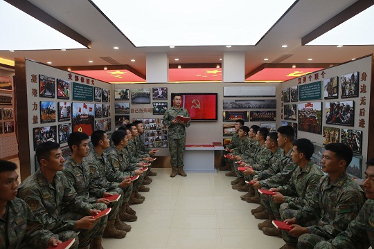 圖為第80集團(tuán)軍某旅”紅八連“官兵用“支部像團(tuán)火,黨員個(gè)頂個(gè)”的連魂,打造堅(jiān)強(qiáng)的戰(zhàn)斗集體。王迪 攝