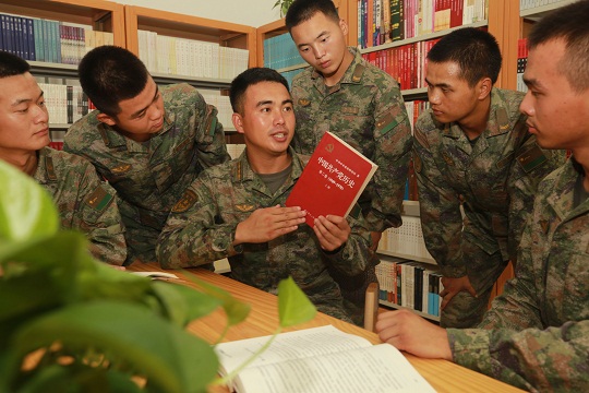 圖為第80集團(tuán)軍某旅“紅八連”官兵學(xué)習(xí)黨史。仇成梁 攝