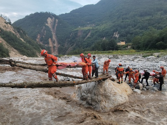 9月5日,四川省甘孜藏族自治州瀘定縣發(fā)生6.8級(jí)地震后,武警四川總隊(duì)機(jī)動(dòng)第二支隊(duì)官兵趕赴現(xiàn)場(chǎng)展開(kāi)救援。圖為官兵在瀘定縣磨西鎮(zhèn)磨子溝村搭建臨時(shí)木橋,轉(zhuǎn)移被困群眾。本報(bào)通訊員洪福樂(lè) 攝