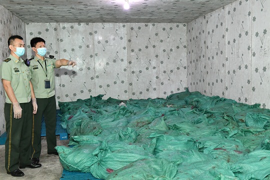 今年以來(lái),海南檳榔種植業(yè)大幅減產(chǎn),鮮檳榔果價(jià)格持續(xù)飆升。該團(tuán)伙為牟取暴利,通過(guò)利用快艇海上轉(zhuǎn)運(yùn)和貨車(chē)夾藏?cái)y運(yùn)的方式將境外鮮檳榔果從海、陸兩個(gè)方向轉(zhuǎn)運(yùn)入瓊。近日,經(jīng)過(guò)分析研究和偵查,海南海警局執(zhí)法人員在全面摸清犯罪鏈條且抓捕時(shí)機(jī)成熟后,聯(lián)合海南省公安廳、海口海關(guān)緝私局、湛江市公安局、昆明海關(guān)緝私局等部門(mén)在瓊、粵、桂、滇四省統(tǒng)一開(kāi)展收網(wǎng)行動(dòng)。各部門(mén)周密配合、協(xié)同作戰(zhàn)、海陸聯(lián)動(dòng),一舉斬?cái)嗔?個(gè)鮮檳榔果走私鏈條,查證涉案走私新鮮檳榔果360余噸。此案為海南海警局成立以來(lái)經(jīng)辦涉案走私鮮檳榔數(shù)量最大的一宗案件。