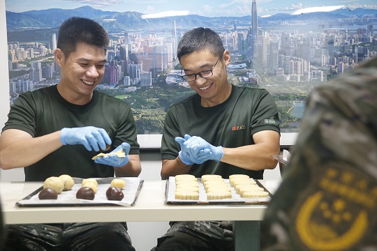 該局精心策劃相關(guān)事宜,提前定制特殊模具,指派專人指導(dǎo)月餅制作。為讓小小月餅吃出滿滿的“儀式感”,執(zhí)法員們將一抹抹鄉(xiāng)愁融進(jìn)了月餅里,把一句句祝福包在了月餅中?!爸袊>薄ⅰ昂=l(wèi)士”、“不忘初心”、“絕對忠誠”……一個(gè)個(gè)獨(dú)具海警特色的月餅記錄了海警人的家國情懷。