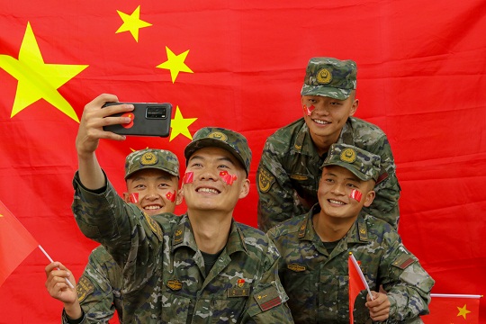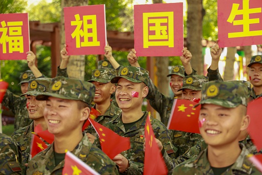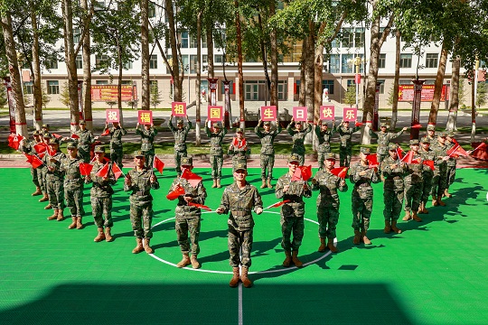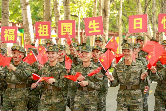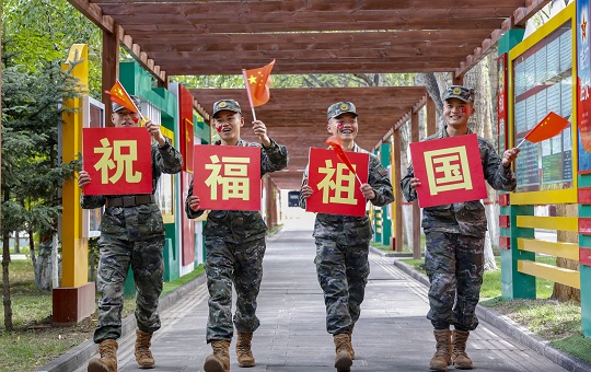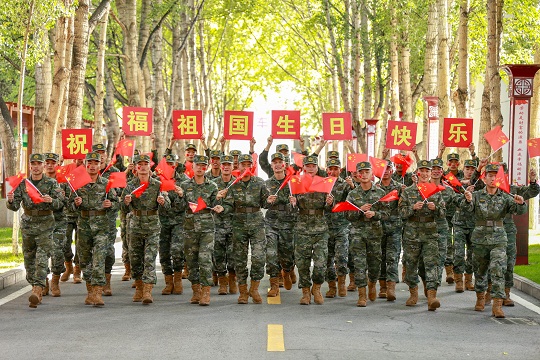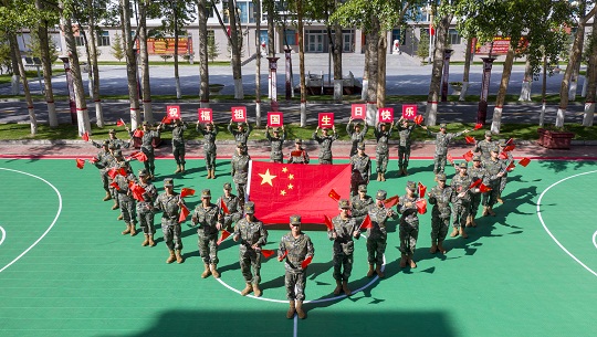國慶前夕,武警青??傟?duì)開展“向祖國深情告白”主題活動,官兵們通過與國旗合影、組織升旗儀式等形式,向偉大祖國深情告白,祝福偉大祖國繁榮昌盛。圖為官兵揮舞國旗喜迎國慶。