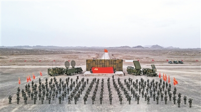 圖②:綜合演練過后,第71集團軍某旅組織官兵在黨旗下宣誓。袁中彪 攝