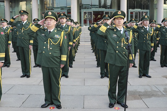 “同志們,黨在號(hào)召、祖國(guó)在呼喚、人民在期待,時(shí)代催人奮進(jìn),我們要堅(jiān)定愛黨的信念、強(qiáng)化愛國(guó)的情懷、盡好衛(wèi)國(guó)的責(zé)任、扛起強(qiáng)國(guó)的擔(dān)當(dāng),為黨的事業(yè)、為國(guó)家富強(qiáng)作出軍人應(yīng)有的貢獻(xiàn)!”升旗儀式后,總隊(duì)少將政治委員楊志強(qiáng)發(fā)表了熱情洋溢的致辭。
