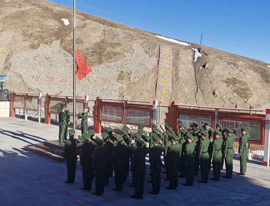 升旗是一項(xiàng)神圣的儀式,更是對(duì)靈魂的一次洗禮。當(dāng)天,該總隊(duì)各基層部隊(duì)也紛紛舉行了升旗儀式,為祖國(guó)慶生。在海拔4800多米的昆侖山,擔(dān)負(fù)青藏鐵路昆侖山隧道守護(hù)任務(wù)的官兵升起國(guó)旗。這里高寒缺氧、風(fēng)雪彌漫,條件極為艱苦,但官兵高喊“寧可生命透支,不讓使命欠賬”的口號(hào),扎根高原、無悔奉獻(xiàn)。升旗儀式結(jié)束后,戰(zhàn)士羅昌強(qiáng)深情地說:“感覺所有堅(jiān)守和辛苦,就為了這一面‘中國(guó)紅’!”