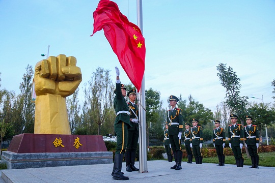 一面國(guó)旗,一身軍裝。在總隊(duì)新兵團(tuán),剛剛穿上軍裝不久的很多新兵都是第一次參加如此隆重的升旗儀式。“今天的升旗儀式,深深震撼了我,當(dāng)看著鮮艷的紅旗冉冉升起時(shí),我感受到了作為軍人的自豪感、使命感。我一定以更加昂揚(yáng)的精神狀態(tài),積極投身新訓(xùn),走好軍旅的每一步。”新兵劉佳輝激動(dòng)地說。