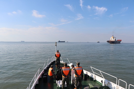 為進(jìn)一步提升巡邏管控質(zhì)效,維護(hù)轄區(qū)海域安全穩(wěn)定,山東威海海警局聯(lián)合海岸警察、漁政、海事等多家涉海職能單位,開展海上聯(lián)合巡航,對海上治安、海洋生態(tài)環(huán)境保護(hù)、海上重點(diǎn)目標(biāo)設(shè)施守護(hù)、漁船管控及嚴(yán)防疫情海上輸入等方面進(jìn)行重點(diǎn)檢查,以《中華人民共和國海警法》為重點(diǎn),對涉海人員開展普法教育,同時對漁船民進(jìn)行安全生產(chǎn)注意事項、疫情防控宣傳教育。涉海部門發(fā)揮各自職能優(yōu)勢,形成有效聯(lián)動,起到良好成效,得到了轄區(qū)涉海企業(yè)和人員的廣泛認(rèn)可。