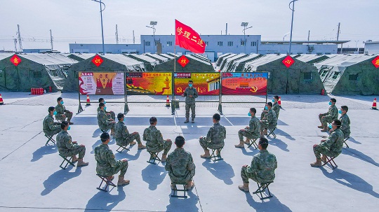 在西藏軍區(qū)某邊防團“高原戍邊模范營”,跟隨官兵巡邏的國防大學(xué)蹲點專家李書吾教授,結(jié)合自身學(xué)習(xí)黨的二十大報告心得,為邊防戰(zhàn)友上了一堂別開生面的宣講課,官兵們認(rèn)真聆聽,現(xiàn)場掌聲不斷。