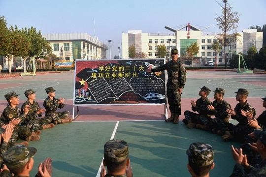 “黨的二十大報(bào)告強(qiáng)調(diào),全面加強(qiáng)練兵備戰(zhàn),提高人民軍隊(duì)打贏能力。作為一名基層官兵,我深感責(zé)任在肩,時(shí)不我待!”近日,在中隊(duì)訓(xùn)練場(chǎng)上,一場(chǎng)學(xué)習(xí)分享會(huì)正在進(jìn)行,官兵們利用訓(xùn)練間隙認(rèn)真學(xué)習(xí)黨的二十大報(bào)告。