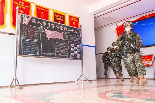 “全面加強(qiáng)練兵備戰(zhàn),提高人民軍隊(duì)打贏能力?!弊哌M(jìn)中隊(duì)營(yíng)區(qū),隨處可見(jiàn)拼搏訓(xùn)練的官兵、擺放整齊的裝備、歲月留痕的訓(xùn)練器材、信息化智能化的執(zhí)勤設(shè)施。每個(gè)崗樓下面,都設(shè)置有“哨兵,你已進(jìn)入戰(zhàn)場(chǎng)”和“召之即來(lái)、來(lái)之能戰(zhàn)、戰(zhàn)之必勝”的戰(zhàn)斗標(biāo)語(yǔ),不斷強(qiáng)化官兵居安思危意識(shí)。