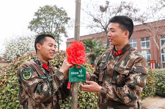 圖為新下隊(duì)官兵栽種泡桐樹(shù),傳承紅色基因,擔(dān)當(dāng)強(qiáng)軍重任。