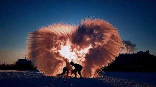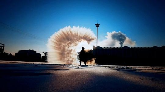 本報(bào)訊 記者韓瀟 通訊員陳小鵬 朱韜 王健州 近日,黑龍江地區(qū)大幅度降溫,伊春市最低溫度更是達(dá)到零下35℃。武警黑龍江總隊(duì)伊春支隊(duì)在訓(xùn)練之余開展特色文化活動(dòng)“潑水成冰”,讓官兵感受冰雪文化的樂趣。低溫下,潑灑出的水和熱氣被瞬間凝結(jié)成冰、成霜、成凌,層次分明地在空中擴(kuò)散成煙花一般的絢爛,形成一幅藍(lán)天、白雪、白霧交織在一起的絕美畫卷。