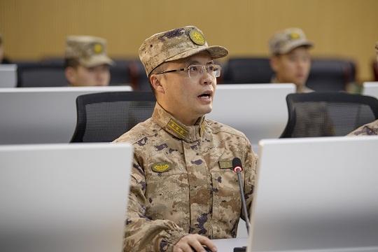 圖為丁國林正在組織對抗訓練導調(diào)作業(yè)。