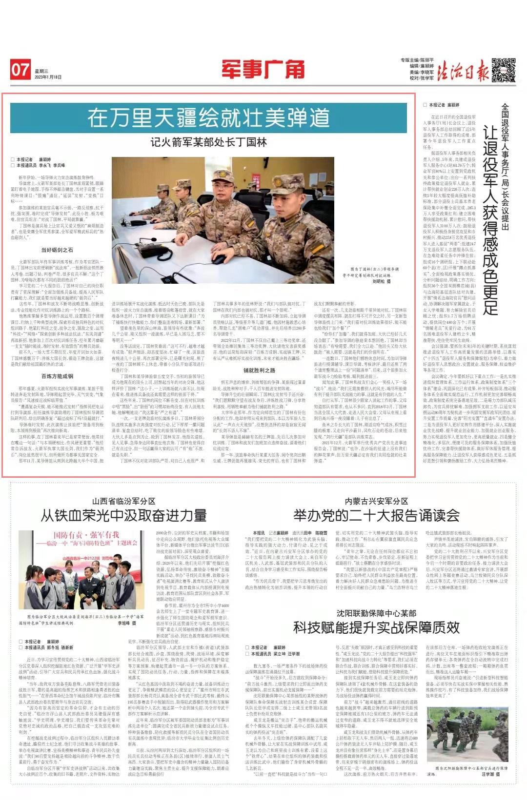 聞知此事,丁國林和戰(zhàn)友們會心一笑投入下一場“戰(zhàn)斗”。他說:“我們無須羨慕別人的風光,竭盡所能做有利于提升部隊實戰(zhàn)能力的事,這就是有價值的人生。”