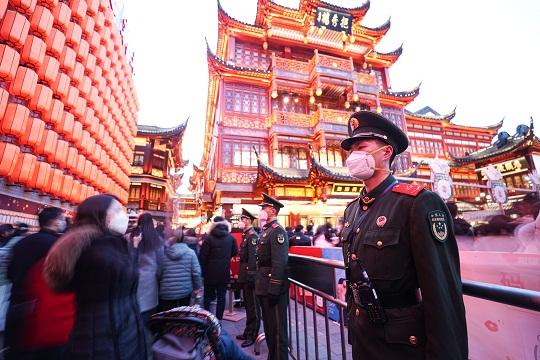 “和我第一年參加豫園執(zhí)勤任務(wù)時相比,今年的豫園花燈花樣更多了,節(jié)日的氛圍更濃了,游園群眾更多了,我們的責(zé)任也更重了?!焙蛻?zhàn)友們分享執(zhí)勤感受時,有著10次豫園元宵節(jié)執(zhí)勤經(jīng)驗的二級上士王健說。