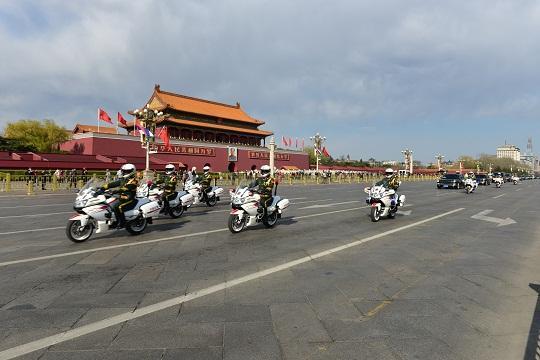 圖為2018年國賓護衛(wèi)隊正在執(zhí)行中非合作論壇護衛(wèi)任務。安曉惠 攝