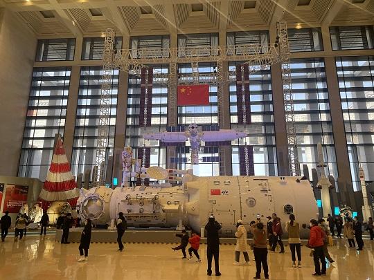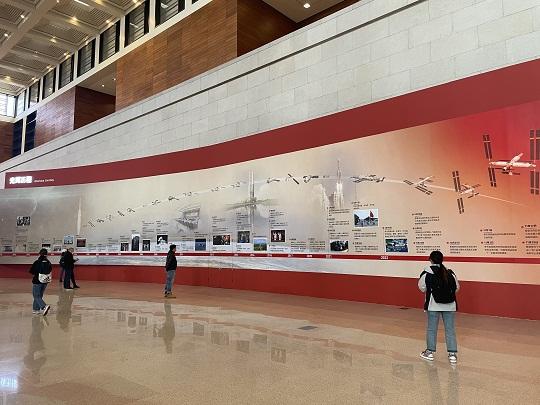 圖為中國(guó)載人航天工程三十年成就展展廳。