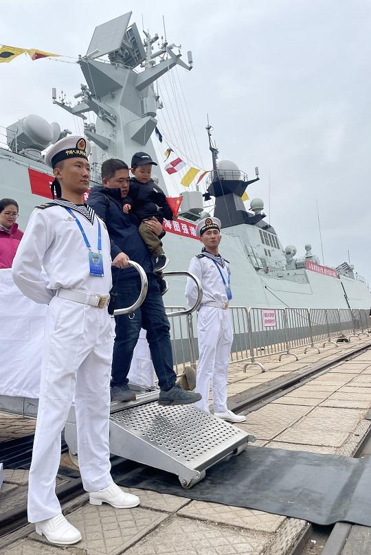 4月22日的青島港3號(hào)碼頭,前來(lái)參加“2023年海軍成立紀(jì)念日艦艇開(kāi)放活動(dòng)”的市民絡(luò)繹不絕。艦艇懸掛滿旗,以海軍最高禮儀迎接人民海軍成立74周年這個(gè)重要的日子。