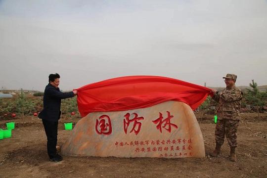 4月28日,在大興安嶺南麓科爾沁右翼前旗科爾沁鎮(zhèn),內(nèi)蒙古興安軍分區(qū)聯(lián)合興安盟國防動員委員會舉行“國防林”建設揭牌儀式和群眾性植樹活動,現(xiàn)役官兵、文職人員、民兵和部分學校師生,大家一同為綠色興安充“植”。