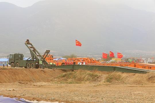 圖為機械化橋梁架設。