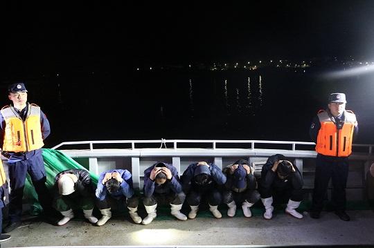 行動(dòng)期間,各單位重點(diǎn)加強(qiáng)渤海口蝦蛄專項(xiàng)捕撈海域、中朝間海域、涉朝韓敏感水域、中韓暫定措施水域等重點(diǎn)方向監(jiān)管,集中打擊擅自變更作業(yè)場(chǎng)所捕撈漁船、涉漁“三無(wú)”船舶、非法入韓作業(yè)漁船,綜合運(yùn)用“科技管?!眻?zhí)法模式開展掃海行動(dòng),海警直升機(jī)同步開展空中巡查,艦機(jī)協(xié)同??找惑w執(zhí)法,見警率、登檢率、查處率顯著提高。同時(shí),各級(jí)海警機(jī)構(gòu)強(qiáng)化與漁政、公安、市場(chǎng)監(jiān)管等部門配合協(xié)作,健全完善信息通報(bào)、工作會(huì)商、聯(lián)合辦案等工作機(jī)制,形成全鏈條打擊、海陸聯(lián)動(dòng)、一體執(zhí)勤新格局。