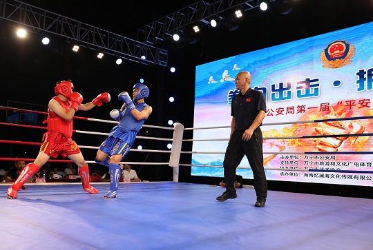 本次活動共分為18個節(jié)目內(nèi)容,包括四場散打環(huán)節(jié)和各類武術(shù)、文藝表演。經(jīng)過前期選拔脫穎而出的8名來自全市公安基層一線的民警一展身手、激烈對抗,選手們充分發(fā)揮各自特長,靈活運(yùn)用戰(zhàn)法戰(zhàn)術(shù),“踢打摔拿”絕招頻出,“紅藍(lán)”雙方為現(xiàn)場觀眾奉獻(xiàn)了一場精彩絕倫的散打表演,充分展示了萬寧公安隊伍訓(xùn)練有素、敢打敢拼、紀(jì)律嚴(yán)明的優(yōu)良作風(fēng)。