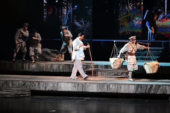該劇是由江西省委組織部、江西省委宣傳部出品,江西文演集團(tuán)、江西省話劇團(tuán)創(chuàng)排的一部精品力作。舞臺上,八塊垂直冰屏、三層可調(diào)角度的升降臺,生動還原了典型歷史場景、革命斗爭氛圍和井岡山地區(qū)特色。演繹中,飽滿的故事情節(jié)、鮮活的人物形象、激烈的劇情沖突,實現(xiàn)了歷史邏輯、藝術(shù)邏輯和情感邏輯的有機(jī)結(jié)合,將政治性、思想性、藝術(shù)性、觀賞性融于一體,讓學(xué)員們沉浸式回顧那段崢嶸歲月。