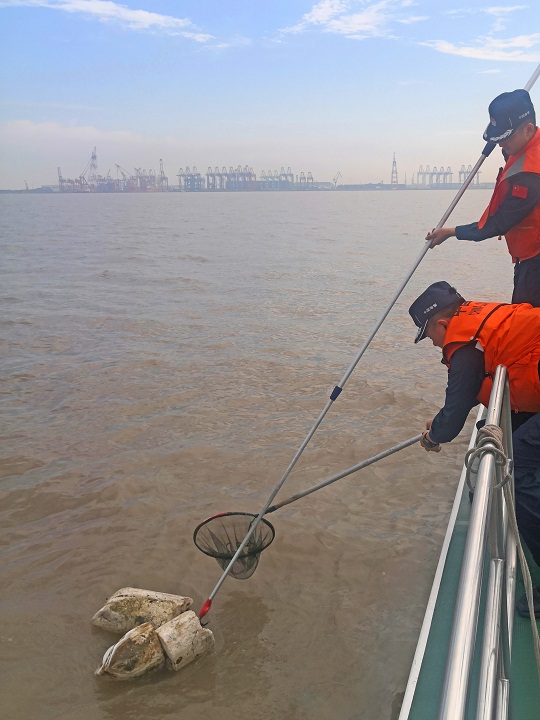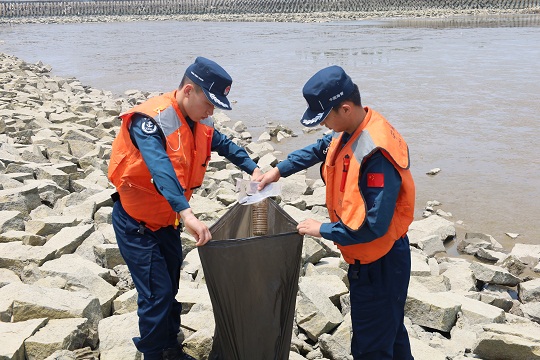 在日常轄區(qū)巡邏時(shí),上海海警局執(zhí)法員持續(xù)發(fā)揮“海洋凈化小分隊(duì)”作用,主動(dòng)為海洋“清潔”,對附近航道內(nèi)及海岸堤壩上的各類垃圾進(jìn)行清理。