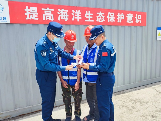 執(zhí)法員深入港口碼頭、漁業(yè)村和轄區(qū)船舶,進(jìn)行普法宣傳、貼近交流,向駐地群眾普及海洋知識(shí)和海洋環(huán)境保護(hù)法、《海域使用管理法》等法律法規(guī),向漁船民講解海警法相關(guān)規(guī)定和伏季休漁有關(guān)常識(shí),引導(dǎo)群眾認(rèn)識(shí)到向海洋傾倒廢棄物、排放污水、禁漁期違法捕撈、使用禁用漁具違規(guī)捕撈等行為,對海洋環(huán)境造成的重大危害。