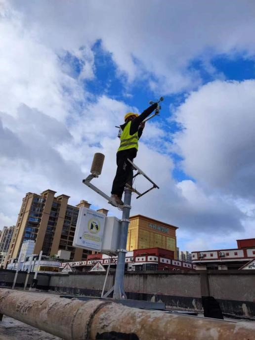 據(jù)應(yīng)急保障小組前方總指揮肖熠介紹,當?shù)匕惭b最多的是常規(guī)六要素自動站,主要測風向、風速、溫度、濕度、氣壓和雨量,保障人員需要趕在臺風登陸前對安裝風向、風速傳感器的風桿,監(jiān)測溫度、濕度的百葉箱及其他設(shè)備進行檢查和加固,對雨量傳感器進行維護,確保臺風過程做到監(jiān)測精密。