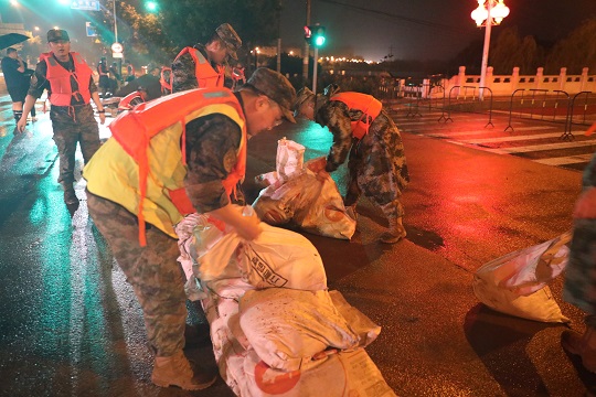 7月31日至8月2日,北京市懷柔區(qū)懷河水位持續(xù)高漲,接到上級命令后,中部戰(zhàn)區(qū)空軍地導(dǎo)某旅組織40余人防汛分隊,赴懷柔區(qū)大杜兩河村大橋和廟城鎮(zhèn)進(jìn)行支援,開展防汛沙袋裝填、防汛墻構(gòu)筑等工作,險情得到有效控制。目前,該部官兵仍然堅守在一線,執(zhí)行警戒巡邏任務(wù)和橋梁管控任務(wù)。
