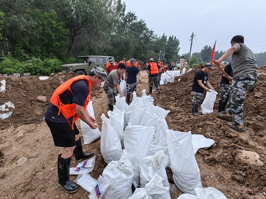 與此同時,武警黑龍江總隊哈爾濱支隊200余名官兵連夜奮戰(zhàn)9小時,在螞蟻河周邊壘筑沙袋2.8萬余個,筑起1.3米高阻隔沙墻600余延長米,保證了當?shù)厝嗣袢罕娚敭a安全。8月4日10時,全體參戰(zhàn)官兵轉戰(zhàn)螞蟻河西側綏滿公路一線,進行1000余米的加固堤壩任務,防止河水漫堤。