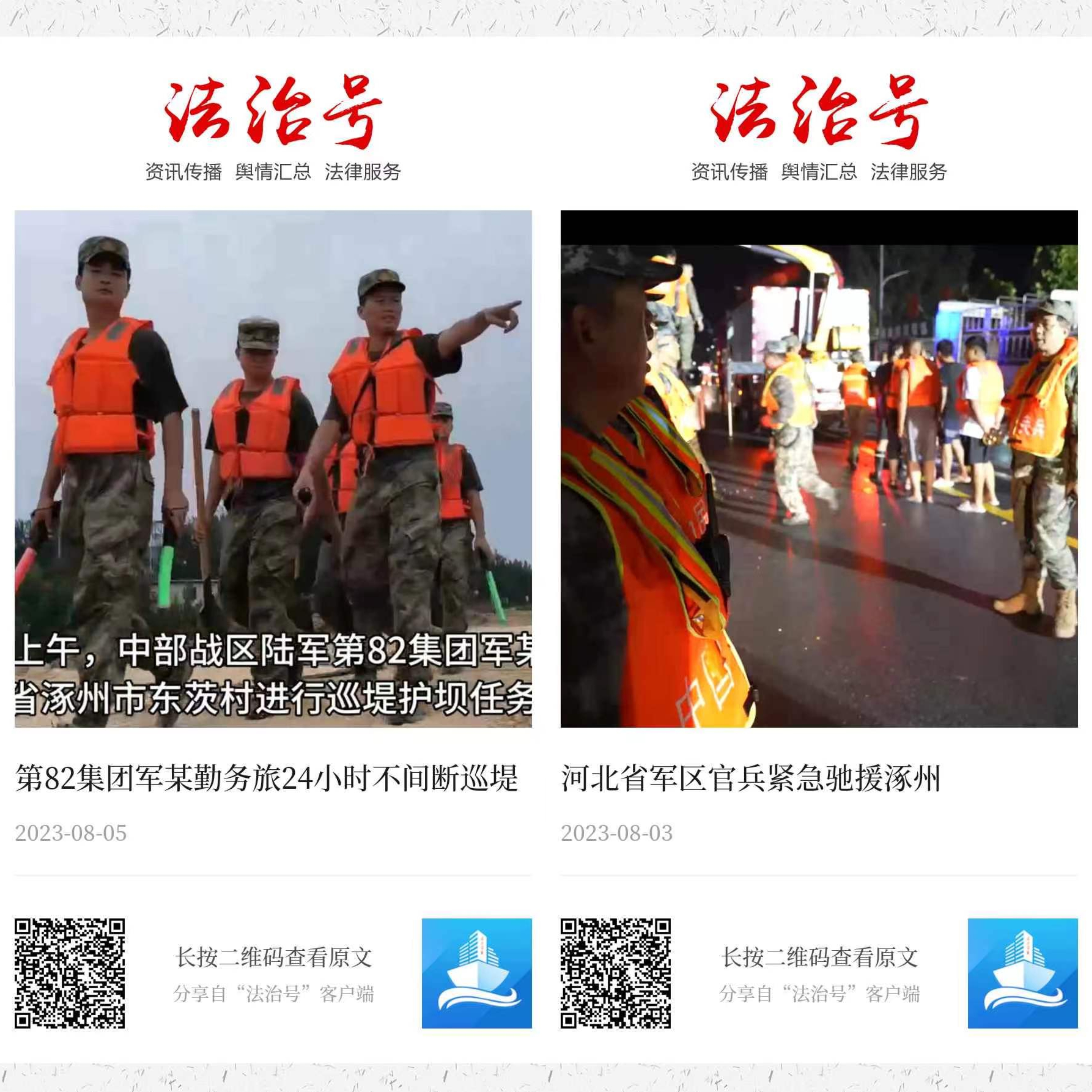 在河北省保定市方向,河北省軍區(qū)專門設立前方指揮部,調集4000余名民兵和136艘沖鋒舟緊急馳援保定等地,夜以繼日奮戰(zhàn)在救援一線,打通一條條救援生命線,為人民筑起一道道“鋼鐵長城”。