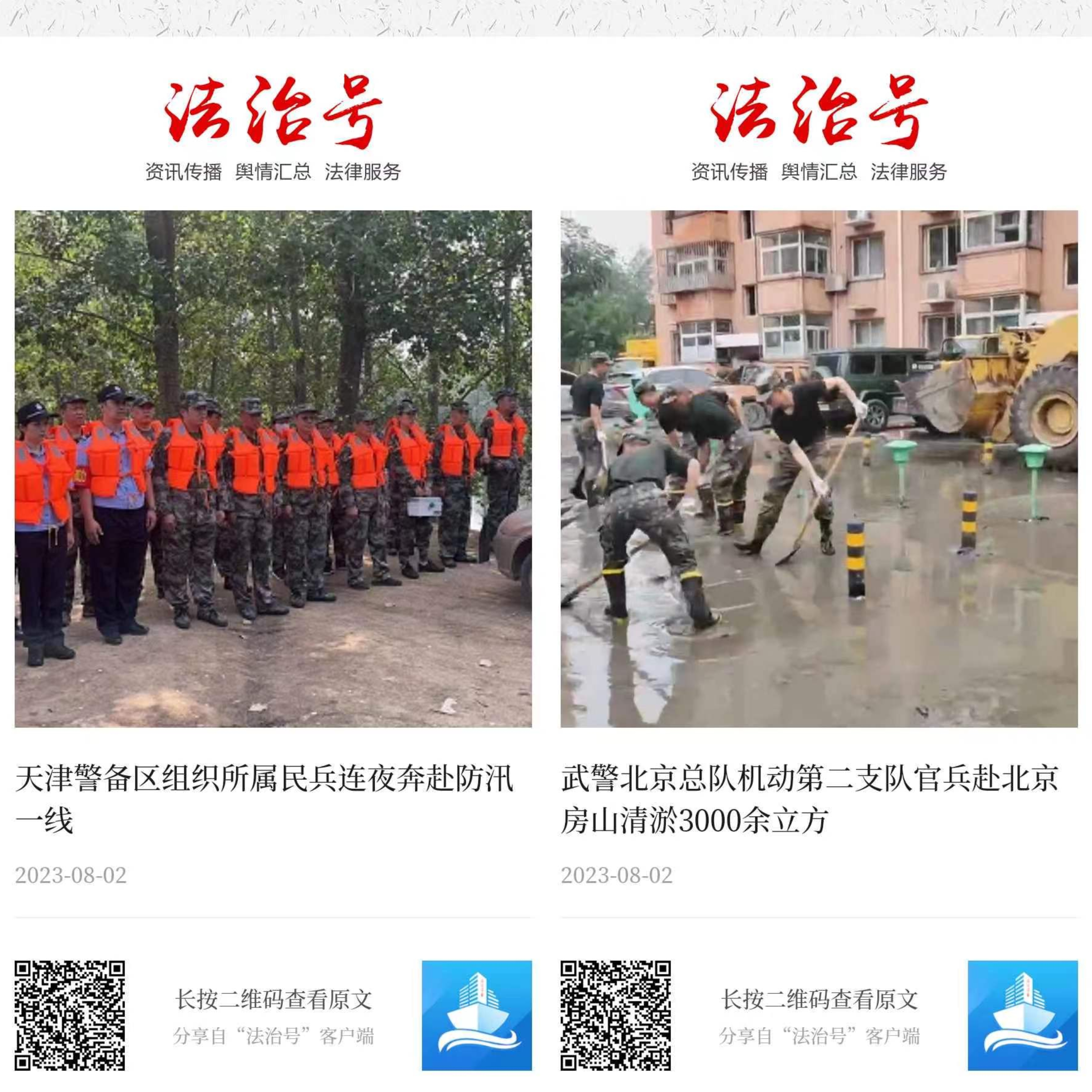 8月3日15時許,武警北京總隊175名官兵前往北京市門頭溝區(qū)王平鎮(zhèn)大臺街道,為2600余名受災群眾送上純凈水、方便面、自熱食品、面包、火腿等400余箱生活物資。