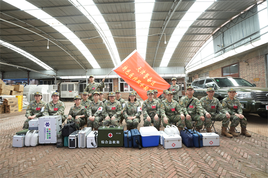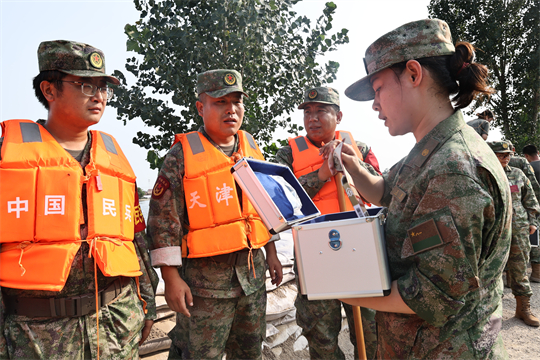 根據(jù)上級統(tǒng)一部署,天津警備區(qū)干休所“輕騎兵”特色醫(yī)療隊依令抵達(dá)天津市靜海區(qū)臺頭鎮(zhèn),對抗洪一線解放軍、武警官兵、民兵進(jìn)行醫(yī)療巡診和緊急救治。