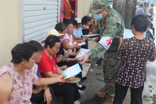 8月9日一早,河北省軍區(qū)石家莊第三干休所醫(yī)療服務(wù)隊(duì)攜帶血壓計(jì)、心電圖機(jī)、血糖檢測(cè)儀等醫(yī)療設(shè)備驅(qū)車一百多公里,來到太行山深處的革命老區(qū)——河北省贊皇縣黃北坪村,為剛剛受到暴雨山洪侵襲的村民進(jìn)行健康體檢、常見病篩查及災(zāi)后防疫宣講。