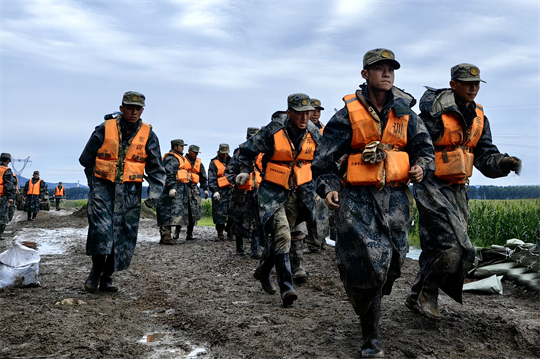 8月3日,五常市磨盤山水庫漫堤,下游村鎮(zhèn)情況危急。某工化旅奉命出征,400余名官兵駕駛挖掘機(jī)、裝載機(jī),攜帶沖鋒舟、汽艇奮戰(zhàn)4晝夜,疏導(dǎo)公路35公里、搜救轉(zhuǎn)移被困群眾3000余人。