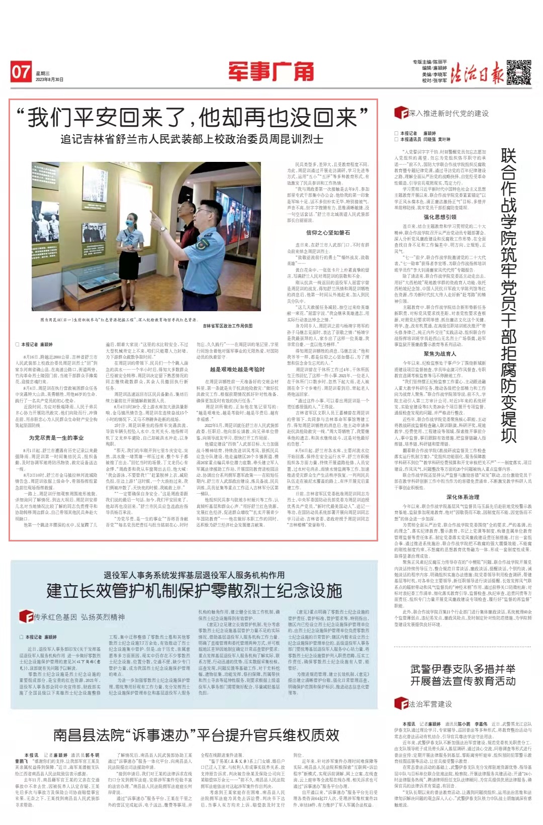 2022年5月,周昆訓(xùn)就任舒蘭市人民武裝部政委。任職后,他向部長(zhǎng)請(qǐng)教、向兄弟單位借鑒、向領(lǐng)導(dǎo)戰(zhàn)友學(xué)習(xí),很快打開工作局面。