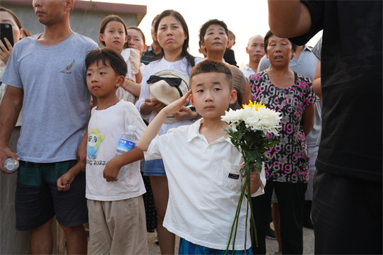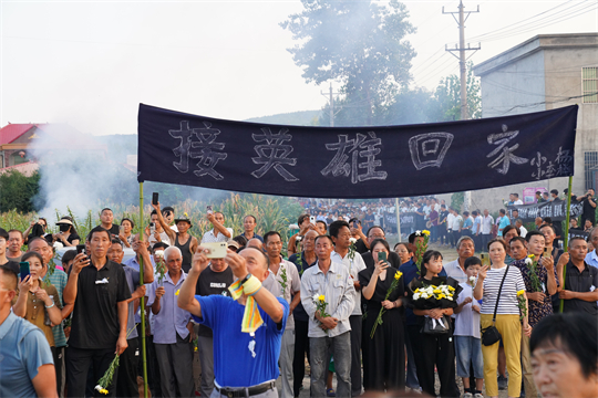 8月16日,跨越近2000公里,吉林省舒蘭市人民武裝部上校政治委員周昆訓(xùn)烈士“回”到家鄉(xiāng)河南省確山縣。在高速公路口、街道兩旁、竹溝革命烈士陵園門前,當(dāng)?shù)馗刹咳罕娛峙蹙栈?,迎接忠魂歸來。
